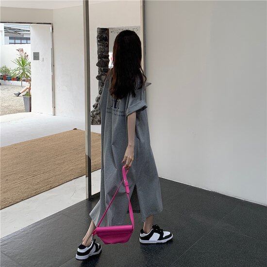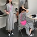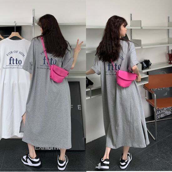 ロングワンピース レディース Tシャツワンピ ロング ワンピース 体型カバー サイドスリット 半袖Tシャツ マキシ Aライン 半袖 ゆったり バックロゴ ゆるワンピ かわいい シンプル カジュアル