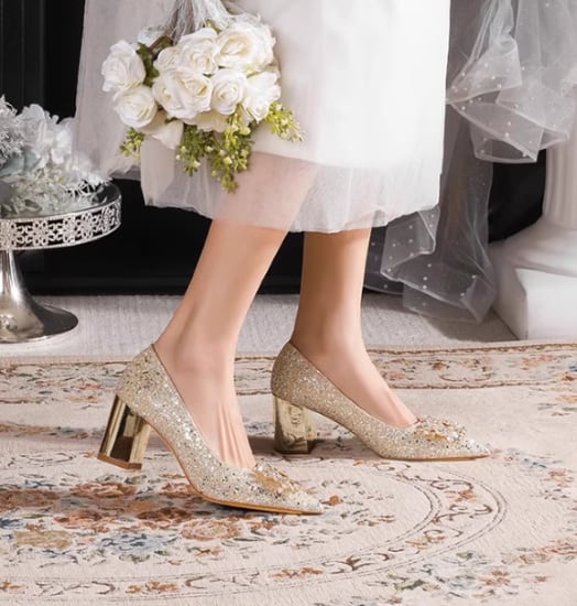 パーティーシューズ レディース 靴 シューズ パンプス ポインテッドトゥ 太ヒール チャンキーヒール きらきら ラインストーン ビジュー きれいめ エレガント お呼ばれ フォーマル 結婚式 美脚