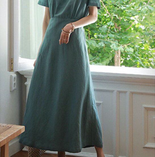 ロングワンピース レディース コットンリネンワンピース コットン リネン エレガント カジュアル Aライン 半袖 綿麻 ロング ロング丈 体型カバー ゆったり 綿麻混 大きいサイズ 着痩せ 夏 無地