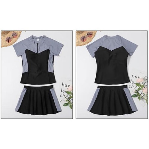 レディース 水着 タンキニ 日焼け止め コンサバ スリム レディース 学生 スポーツ 水着 レディース 3点セット 大きいサイズ 業務用 ブラック グレー